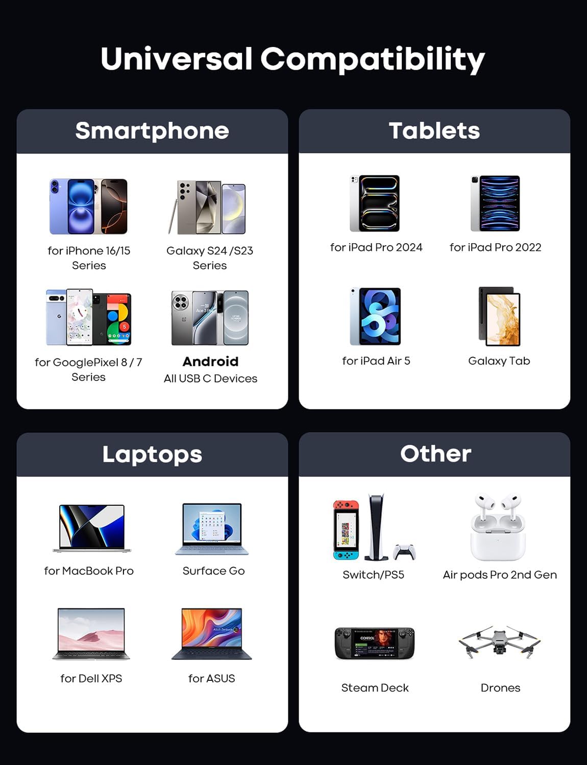 - Universele compatibiliteit: CLEEFUN usb c-kabel voor usb-c smartphones, tablets en laptops, voor iPhone 17/17 Air/17 Pro/17 Pro Max /16 15 serie/MacBook Pro Air/iPad Pro Air mini 6, voor Galaxy S25 S24 S23 Pixel 7 6