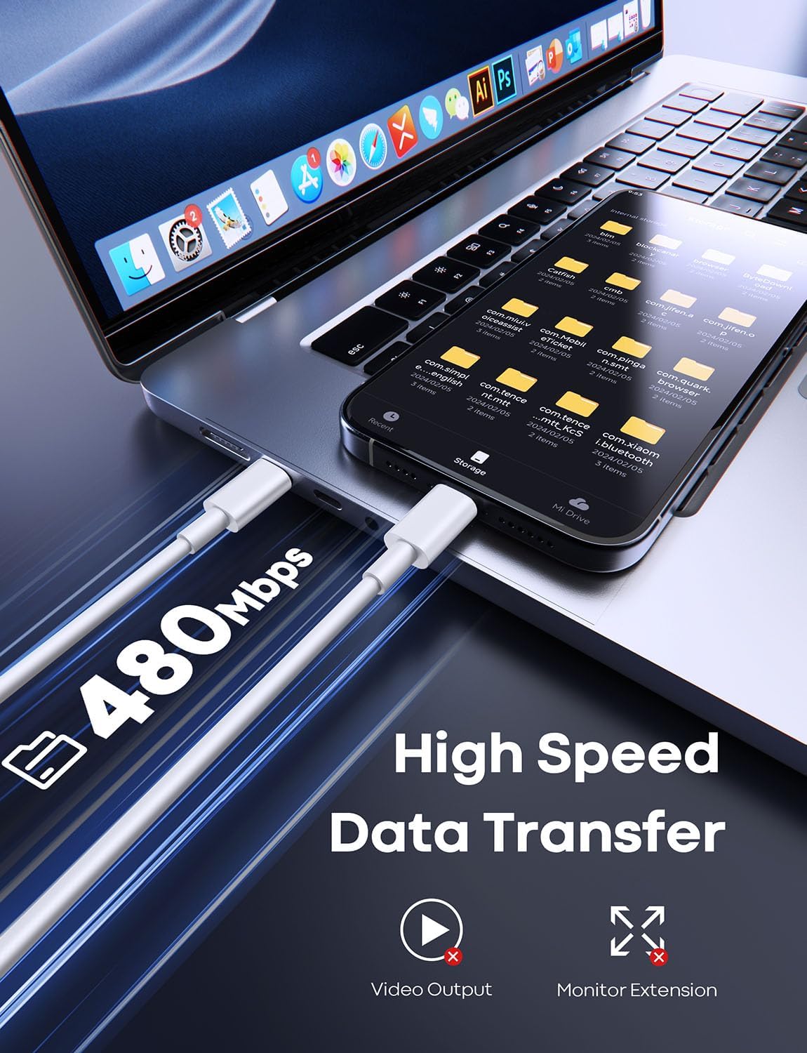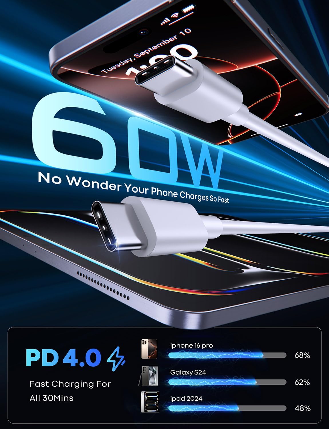 - Hoge snelheid opladen en gegevensoverdracht: deze usbc naar usbc kabel ondersteunt PD3.0/QC3.0, snel opladen tot 60W (20V/3A), gegevensoverdracht tot 480Mbps, realiseren van opladen en gegevensoverdracht 2 in 1